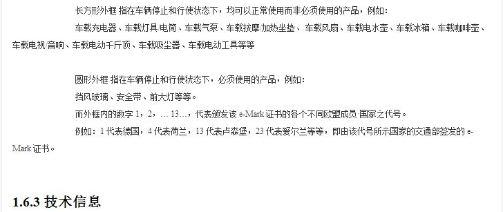 器类产品,必须通过 e-Mark 相关测试认证,标贴 e 标志,欧盟各国海关才会予以放行,准许进入当地市场,所以,汽车