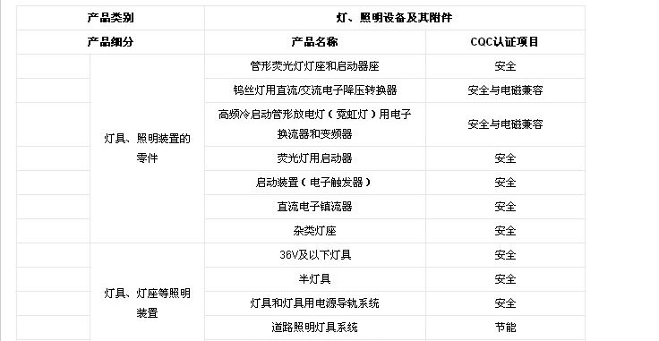 CQC产品认证范围